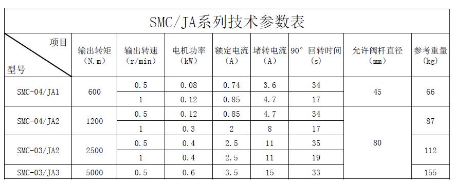 SMC/JA系列閥門(mén)電動(dòng)裝置是部分回轉(zhuǎn)型閥門(mén)電動(dòng)裝置,適用于球閥、蝶閥等類型閥門(mén)以及電動(dòng)風(fēng)門(mén)。其結(jié)構(gòu)形式為組合式,由SMC多回轉(zhuǎn)電動(dòng)裝置與JA部分回轉(zhuǎn)減速裝置相組合而成。該系列產(chǎn)品所適用的環(huán)境條件、溫度、濕度、海拔、防護(hù)等級(jí)均能達(dá)到SMC相應(yīng)規(guī)格產(chǎn)品的水平。