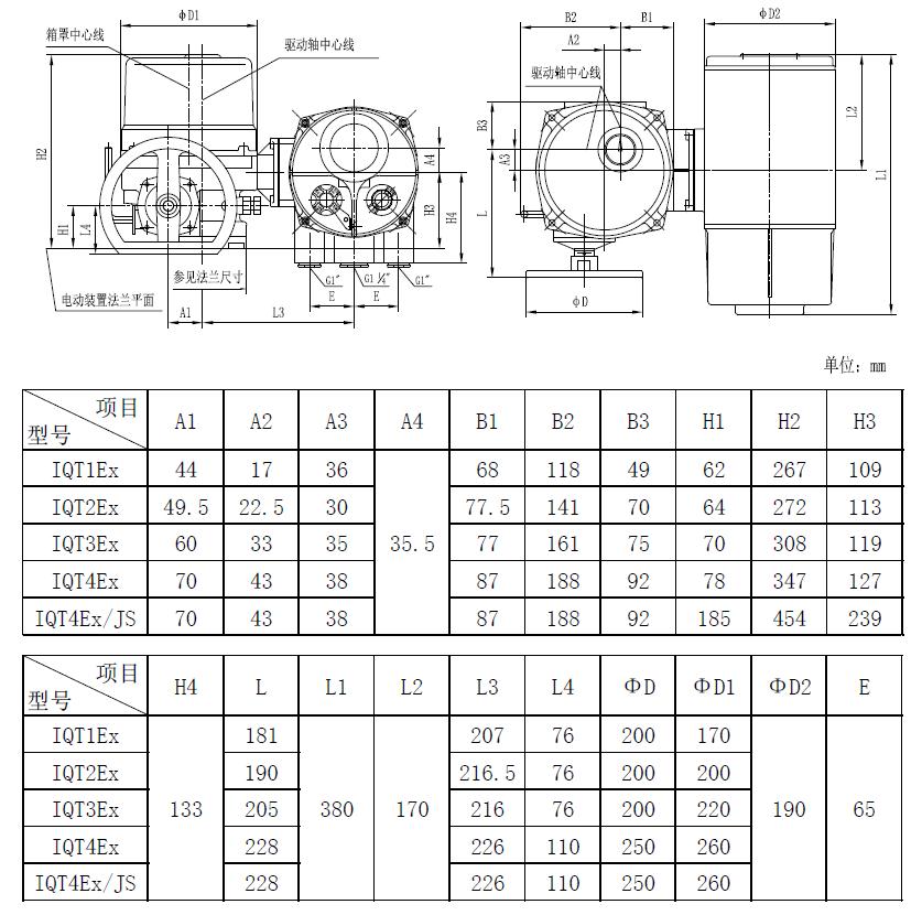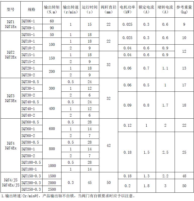 IQT1~IQT4/JS(380V三相電機)系列技術參數表