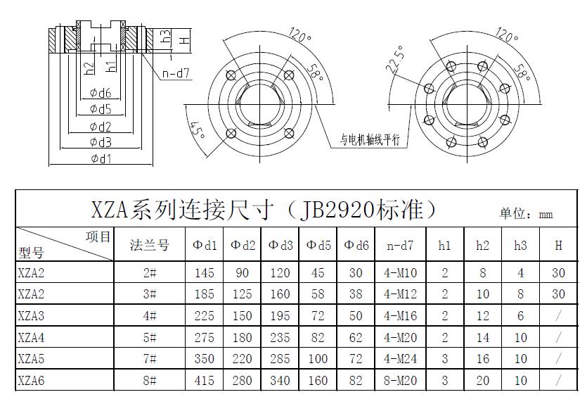 XZA系列JB2920法蘭連接尺寸