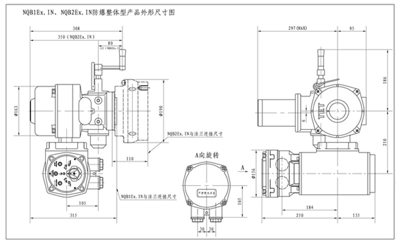 NQB1 NQB2 電動裝置在繼承QB1QB2 優點的同時又增設了產品的使用功能,并且改進了控制機構。通過改型設計的 NQB1NQB2 電動裝置不僅提高了整體性能并且更實用、可靠。 NQB1 NQB2 電動裝置的定位仍為經濟型,它適用于小口徑球閥、蝶閥、旋塞閥等閥瓣工作中90°回轉閥門和類似機構的控制。該產品與閥門組合后可廣泛地應用于石油、化工、電力、市政、冶金、食品、輕工等工業領域的管道控制系統。
