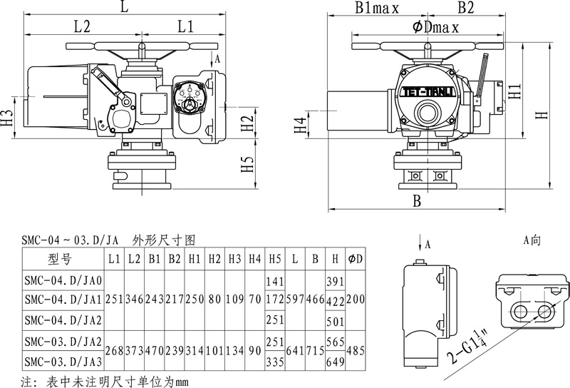 SMC/JA系列閥門電動裝置是部分回轉型閥門電動裝置,適用于球閥、蝶閥等類型閥門以及電動風門。其結構形式為組合式,由SMC多回轉電動裝置與JA部分回轉減速裝置相組合而成。該系列產品所適用的環境條件、溫度、濕度、海拔、防護等級均能達到SMC相應規格產品的水平。